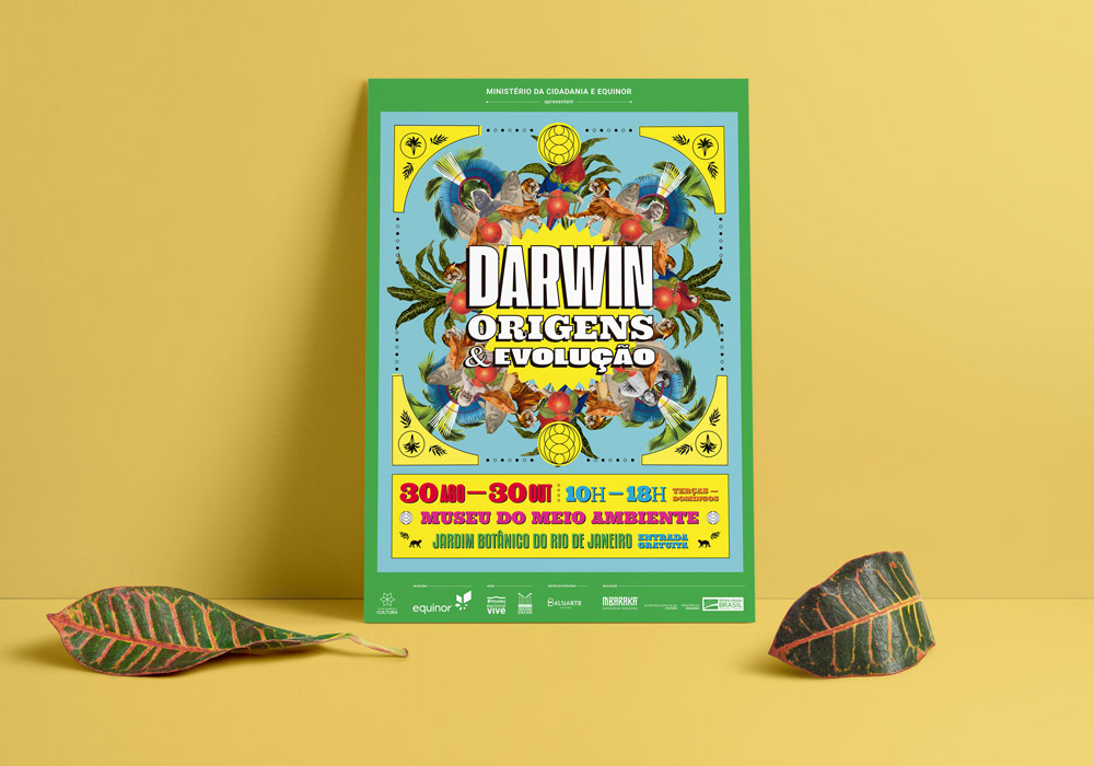 Comunicação visual e projeto gráfico para "Darwin: Origens & Evolução", projeto com concepção, curadoria e produção do estúdio M’Baraká. A exposição esteve em cartaz no Museu do Meio Ambiente, no Jardim Botânico do Rio de Janeiro, de agosto a outubro de 2019. Relacionando o darwinismo à história das ciências no Brasil, a mostra contou com coleções do Museu Nacional, Museu de Ciências da Terra, Fiocruz, entre outros.