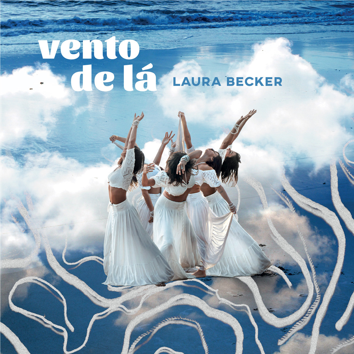 Design de capa com colagem digital para o álbum “Vento de lá”, da cantora Laura Becker. A colagem é composta por fotos variadas de Laura em viagem pelo litoral da Bahia.